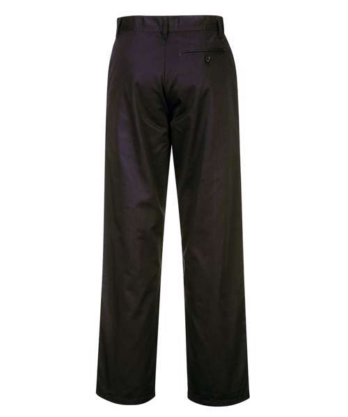 This classic style is durable and comfortable with a sewn in front crease which adds to the professional look. Features include two side pockets and a back jetted pocket.