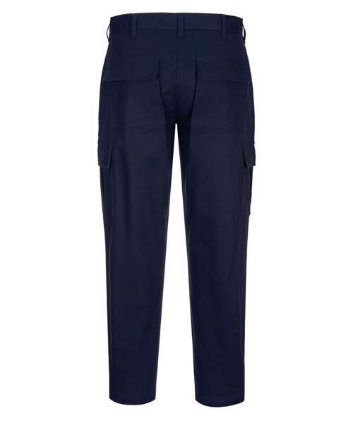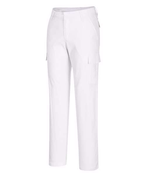 This women’s slim fit stretch cargo is the perfect uniform solution, offering a contemporary slim fit in a dynamic cotton stretch twill fabric. The stretch fabric provides the ultimate in comfort and freedom of movement. Features include side pockets, a rear buttoned jetted pocket and a hook and bar waist fastening. Highly durable with twin stitching throughout and bar-tacked at all stress points.