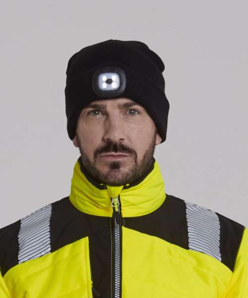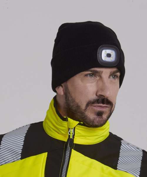 This warm and comfortable acrylic beanie hat features a removable LED front light for superior visibility in low light conditions. The rechargeable LED can be charged in a USB port.