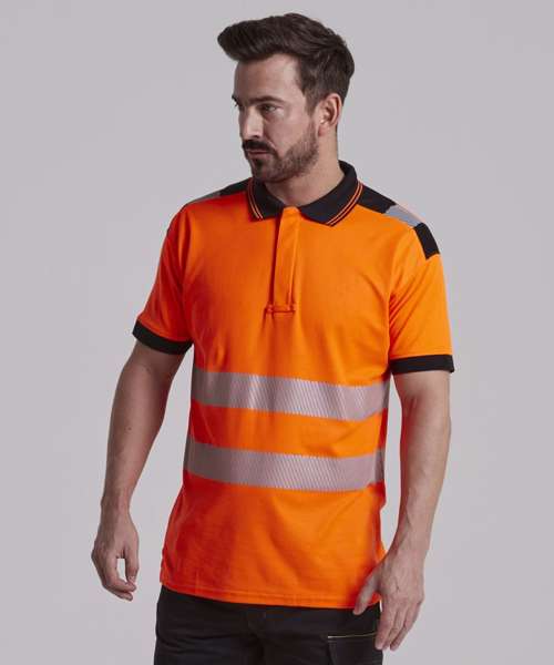 CE certified. Chest pocket. Side vents. Contrast collar with fluorescent stripe. UPF 35+. Moisture-wicking and breathable fabric . Designed with a comfort fit. Contrast colouring. Complies with RIS 3279-TOM for rail industry (orange only). HiVisTex™ Pro reflective tape. Complies with EN ISO 20471 standard. Loop at placket. Registered Community Design.