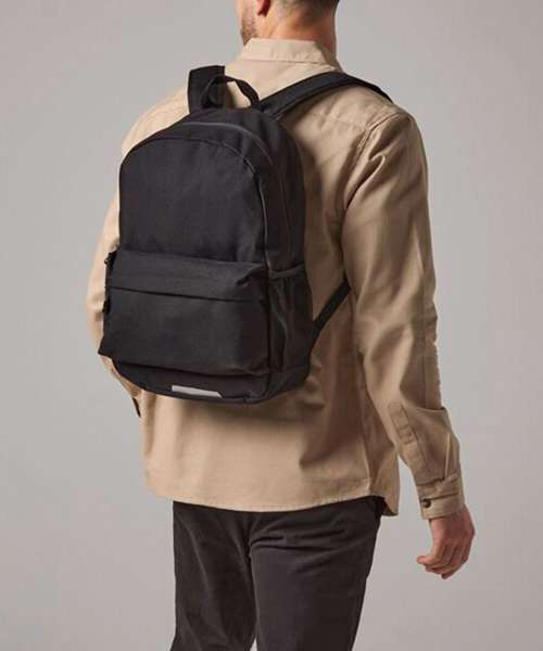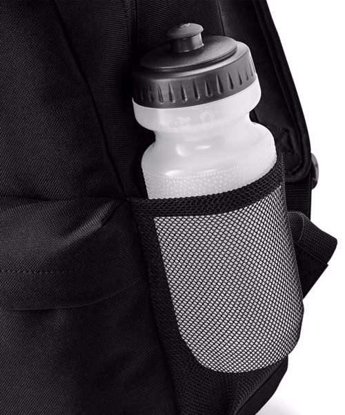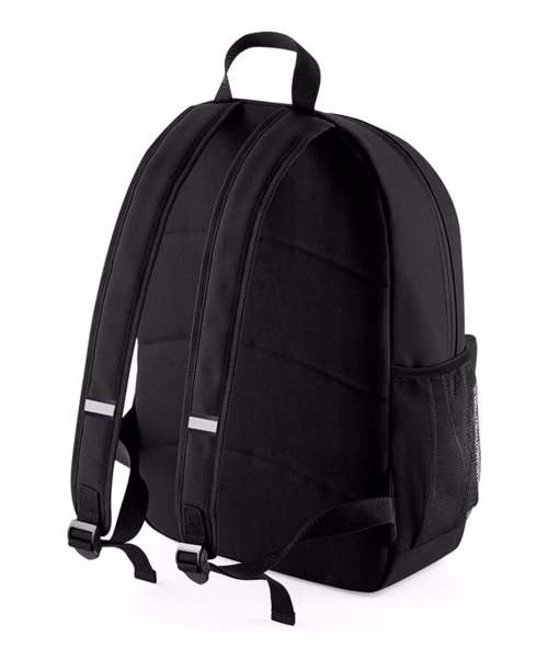 Enhanced visibility reflective accents. Two mesh pockets/ water bottle holders. Internal identification label. Zippered main compartment. Zippered front pocket. Internal slip pocket. Padded back panel. Padded adjustable shoulder straps. Grab handle. Reach certified.