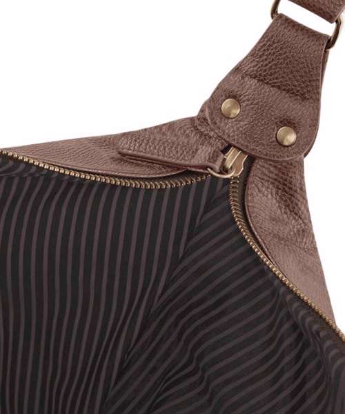 - Fully lined in pinstriped fabricSnap-fastening fold-down endsUse in hand or over the shoulder