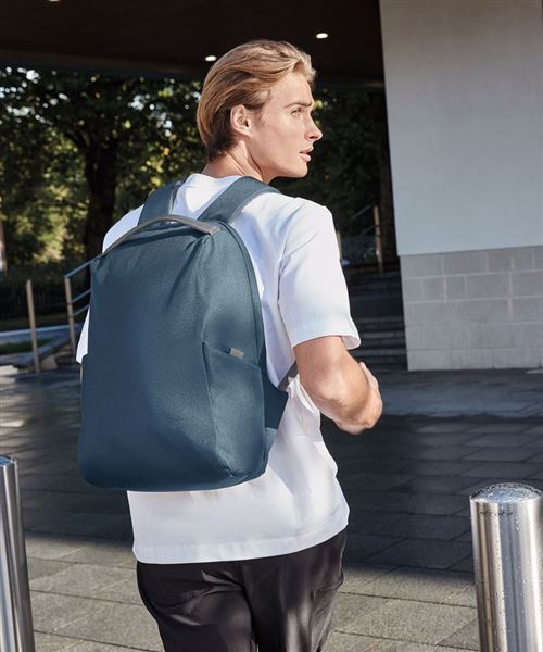 Contains 100% GRS-certified recycled polyester, certified by Control Union CU811033. Recycled Polyester made from 100% rPET, equivalent to approxImately 7 post-consumer bottles. Hidden-access main compartment. Two external bottle pockets. Multiple internal pockets. Padded laptop compartment, compatible up to 15.6". Discreet zipped back panel pocket with RFID-blocking lining. Pull out ‘anti-grab’ security lanyard. Lockable zip pulls. Ergonomic, breathable padded mesh back panel. Fully adjustable chest strap. Padded grab handle. Durable, water-repellent treatment for increased weather protection. PVC-free. TearAway label for ease of rebranding.