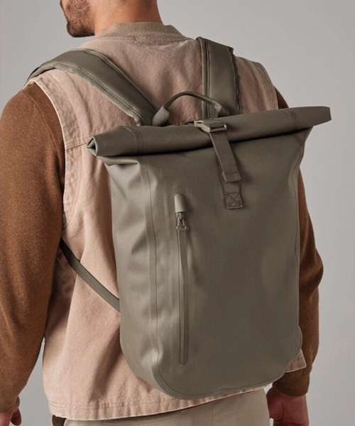 Delivering all the sleek style benefits of a relaxed roll-top backpack, with the addition of waterproof PU-coated fabric, this is where fashion meets function. This is a must for those who commute on foot or by bike, complete with a waterproof main compartment, so things like technology and paperwork stay dry and protected, whatever the weather. Also available in a larger version (QS575), this streamlined bag offers a more compact silhouette for practical, contemporary styling.