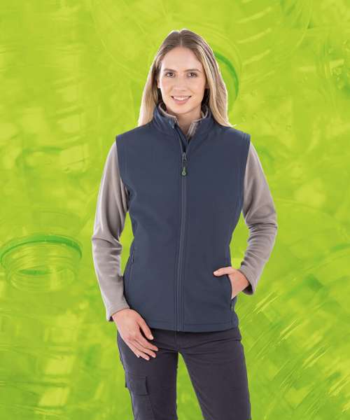 Affordable, recycled, lighter-weight softshell gilet, ideal for all decoration types and budgets, made from a recycled equivalent to conventional yarns. Soft feel fabric with really superior handle.