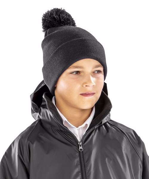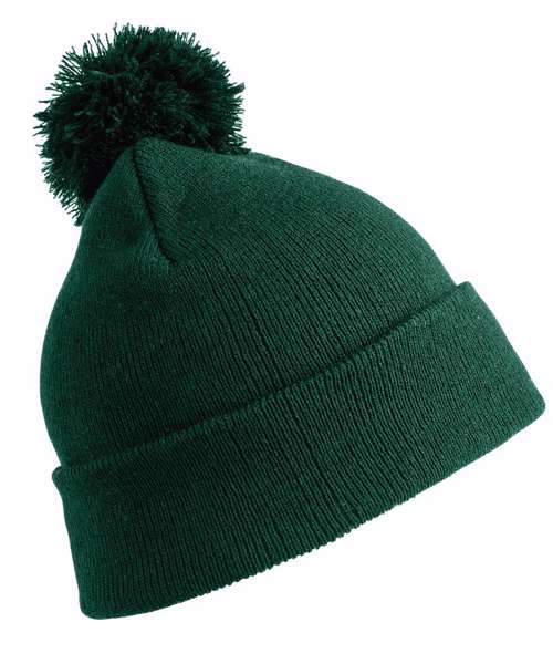 Heavyweight, double thickness knitted beanie with deep fold cuff and pom pom decoration.