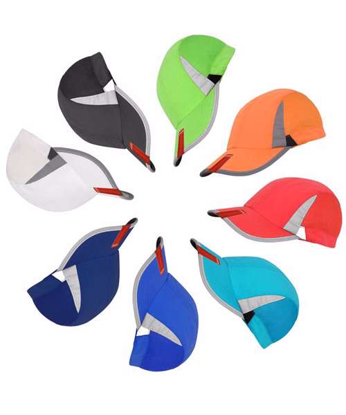 This is a feather weight sport cap in a low profile jockey style quick drying in a non crease sports fabric. Reflective detail to peak and crown. Tear release fabric size adjuster.