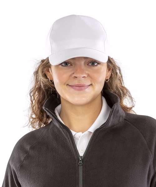A low-profile adult printer’s baseball cap design using a recycled equivalent fabric to conventional yarns. Ideal for best decoration and CORE value budgets.