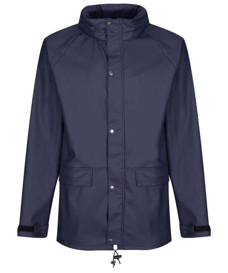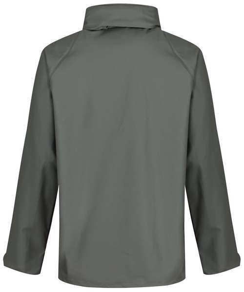 Highly breathable waterproof and windproof PU-coated fabric. Comfortable and lightweight tricot knit backing. Packaway hood with adjusters and studded stormflap. Adjustable cuffs and hem. Reach certified. Ethical Trading Initiative certified.
