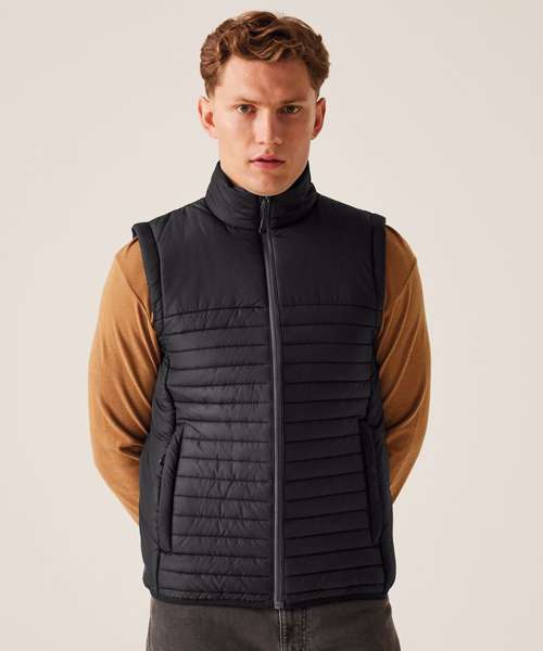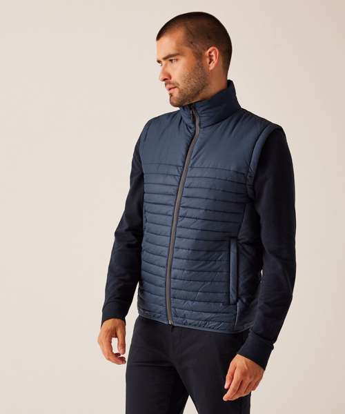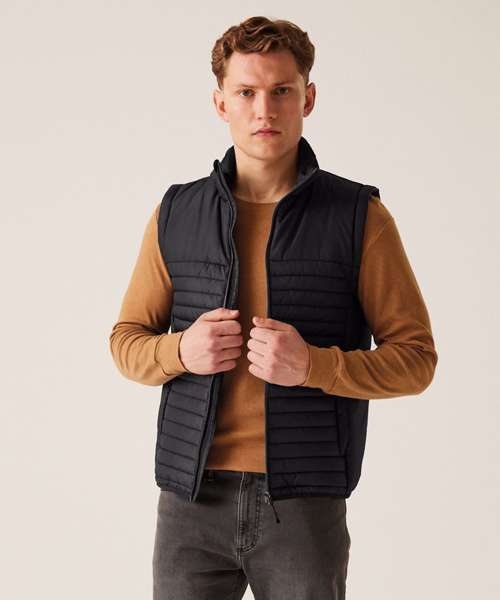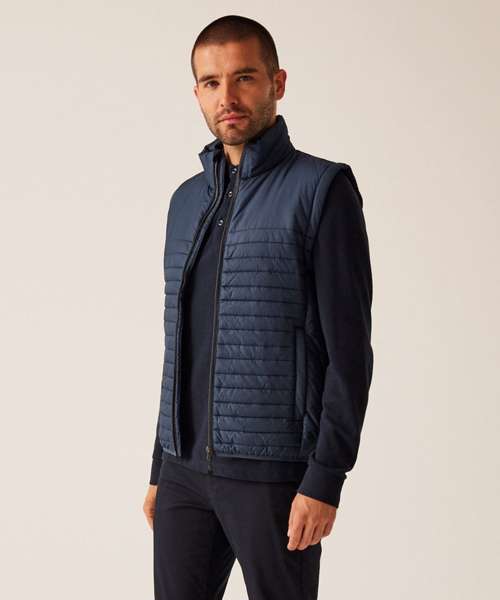 100% Recycled polyester interest face fabric with water-repellent cire finish. Recycled Thermoguard 160gsm insulation, and recycled polyester lining. Stretch binding to hem. 2 zipped lower pockets. Easily compressible. .
