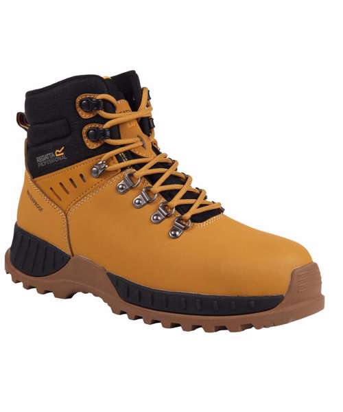 Grindstone S3 safety boots, from Regatta Professional, are perfect for outdoor work. Their waterproof and breathable membrane means you’ll be protected from wet weather and splashes, and your feet will stay happy and fresh. These work boots are finished with a protective composite toecap. Conform to EN20345: 2011 – S3, REACH, ETI compliant.