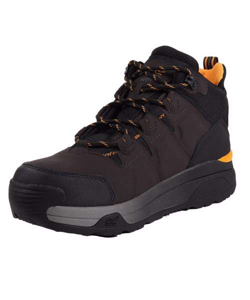 Hyperfort S1P safety hikers, from Regatta Professional, are sure to keep feet happy and protected. These men’s work boots come with a composite toecap for safety, are finished with a metal-free structure, and include a padded collar and tongue for ultimate comfort. Conform to EN20345: 2011 – S1P, REACH, ETI compliant.