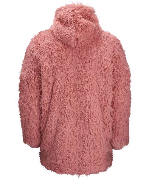 Shaggy fur with warm sherpa lining, plus large hood and pocket. Decoration not recommended.
