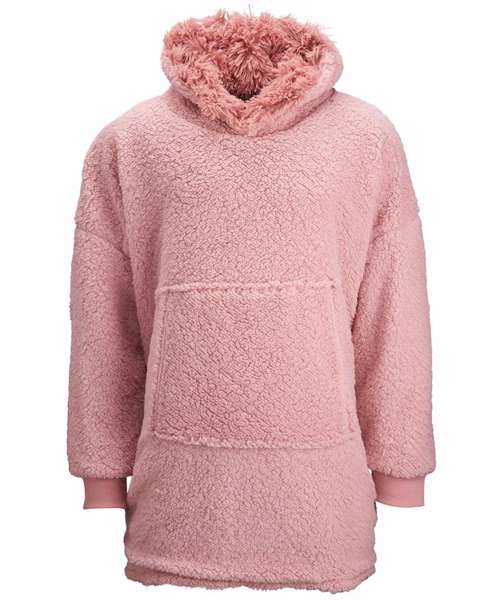 Super-shaggy faux fur with snuggly sherpa reverse. Large hood keeps your head warm and comfy. Oversized – one size fits most, including children – with large pocket to keep your hands warm as toast. Reversible – choose your favourite way!