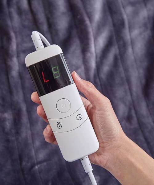Soft, grey and plush, this luxurious blanket is incredibly tactile and won’t overheat overnight. Heat wire: 16m. Cord length: 2.4m. Time set: 5. Heat set: 10. LED display. Rapid heating: 1/2/4/6/8 hour. Auto shut-off. Fitted with UK plug – 220-240v AC 50 Hz.