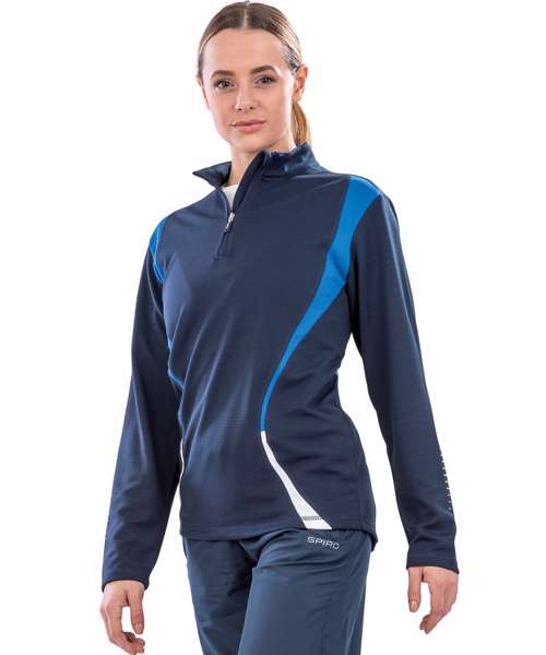 Performance lightweight training top. Breathable. Soft comfort fit COOL-DRY® fabric. Quick drying. 1/4 neck zip closing. Highlighted Spiro logo on back neck position. Keeps the skin cool and comfortable. Ideal layer garment, good warmth factor when wore as a layer. Extremely lightweight. Decoration Guidelines: Decorating methods: Embroidery & Transfer print. Decorators access point: Open.