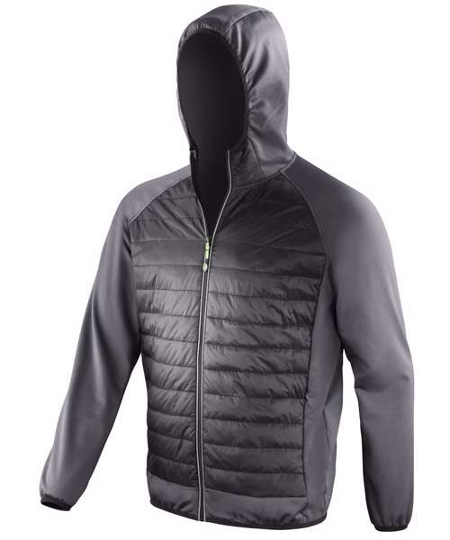 Showerproof, Breathable. Padded body feature; Anatomically curved on women’s. Super stretch fabric hood and hems. Invisible zip side pockets. Bound cuff, hem and hood. Reflective detail. Thumbhole cuff. Integral hood. Quick dry. Virtually weightless, ideal layer garment. Thumbholes help top stay in place. Articulated sleeves allows full motion. Attractive padded body using faux down. Ventilated performance, lightweight insulation. Super-Stretch fabric and ergonomic seams allow natural movement.