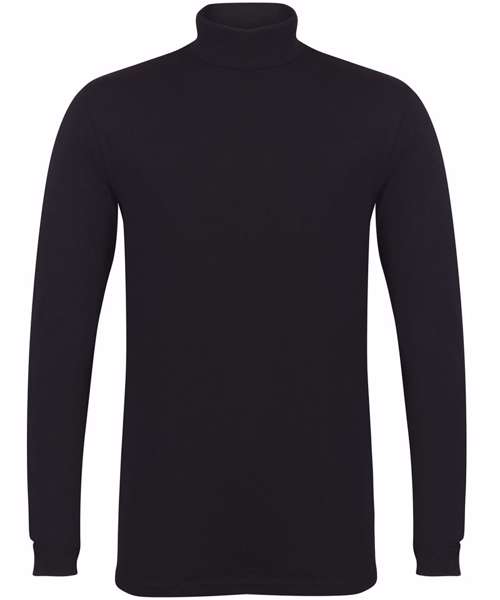 A sleek black roll-neck from the SF feel good stretch range! Made with soft stretch fabric, it has a supreme finish and, of course, feels good. Features a tear-out label for easy rebranding.