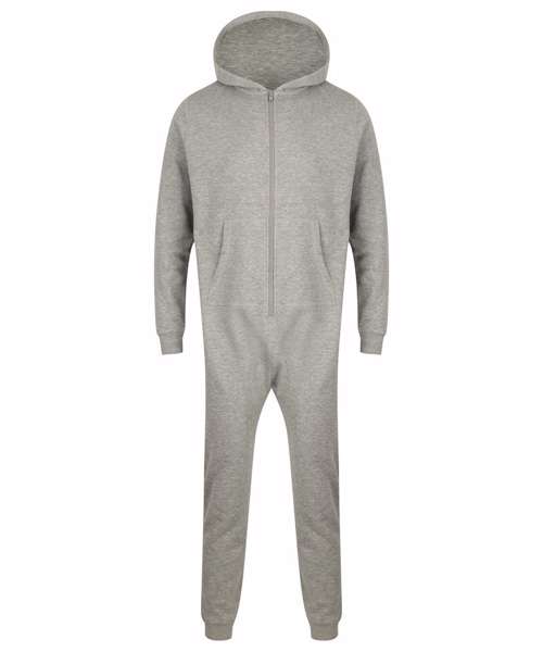Unisex styling all-in-one, matches Kids SM470. Slim fit. Zipper front opening. Elasticated 1x1 rib cuffs. 2-piece hood, with single Jersey lining. Kangaroo patch pocket with flatlock stitching. Flatlock stitching around armholes. Taped back neck. Tear-out label.