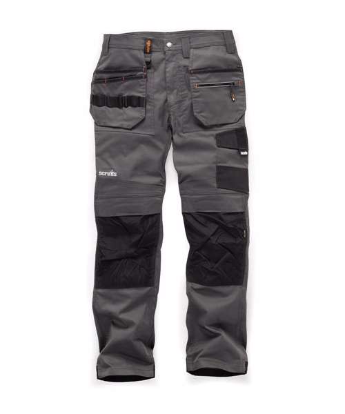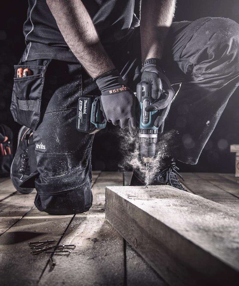 Durable twill cotton work trousers with built-in stretch for comfort and flexibility. Slim fit with comfort gusset for freedom of movement. Abrasion-resistant, top-loading Cordura® knee pockets for enhanced durability. Features holster, cargo, rule, mobile phone and secure, zipped pockets. Hammer loop, tool loops and D-ring for tool and accessory storage. Hard-wearing canvas fabric hem and pocket reinforcements for enhanced durability. Triple-stitched seams. Certified Sedex.