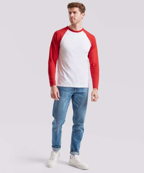 Featuring a sporty contrast colour cotton/Lycra® rib, neck and raglan sleeves, Fruit’s Valueweight long sleeve baseball T combines a classic look with a contemporary tailored fit that’s ideal for retail, licensing and tourism applications. Made from 100% cotton with a fine knit gauge for enhanced printability, you can make the Valueweight long sleeve baseball T yours, anyway you want.