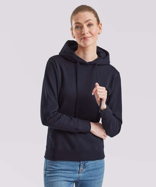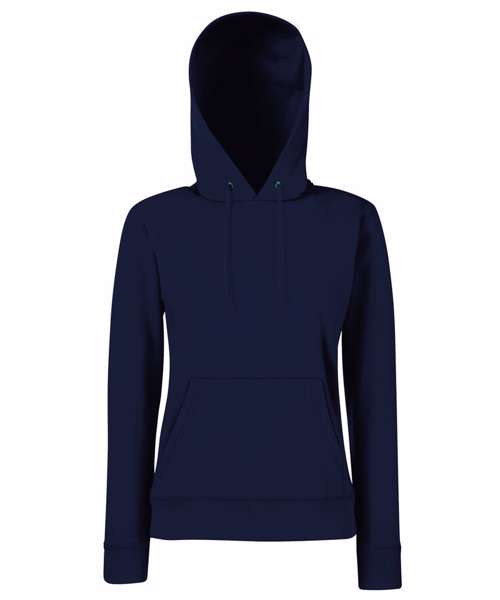 Made with a double fabric hood and shaped side seams for a feminine fit, the women's classic hooded sweat is perfect for promotions, music merchandise, licensing, tourism and more. Details include a front kangaroo pocket and self-coloured flat drawcord and cotton/Lycra® waist and cuff ribs for added warmth. This garment is available in a wide range of colours.