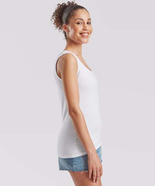 With a fine knit gauge to ensure enhanced printability, the women's Valueweight athletic vest is a classic choice suitable for all kinds of garment decoration. Shaped side seams make for a comfortable feminine fit, while self-fabric binding to neck and armholes creates a durable, clean-cut finish.