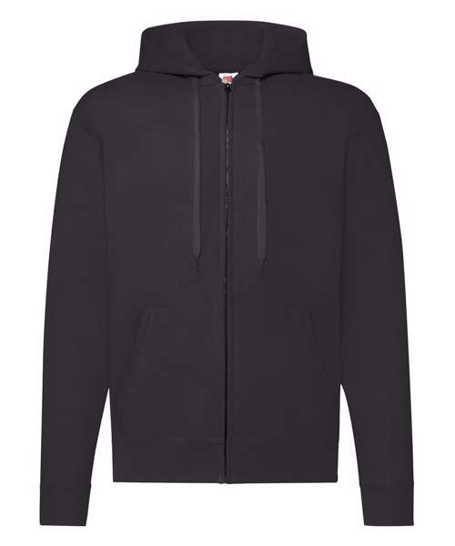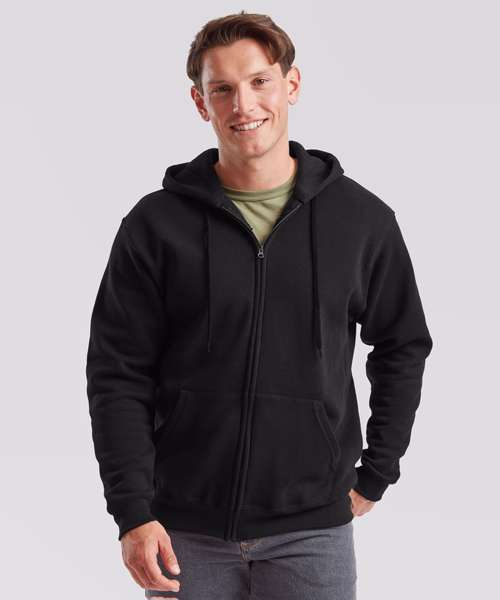 With a double fabric hood and covered metal zip for enhanced printability, the classic hooded sweat jacket is perfect for all kinds of application and is available in a wide range of colours. Details include two front pockets and a self-coloured flat drawcord, with a single Jersey back neck tape and cotton/Lycra® waist and cuff ribs providing everyday comfort and added warmth.