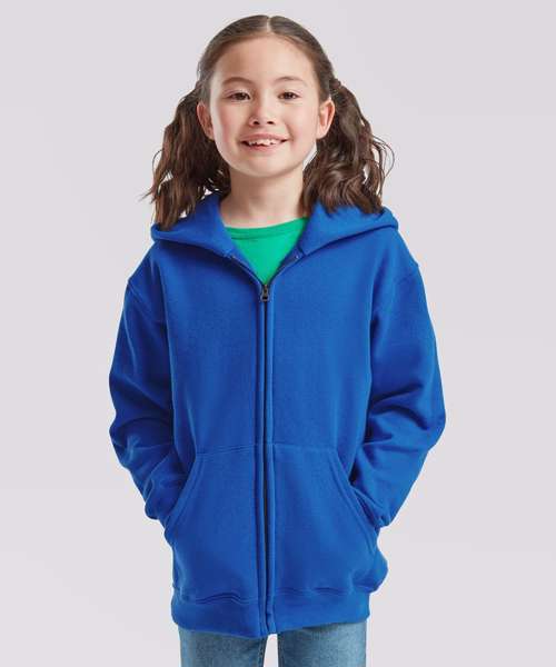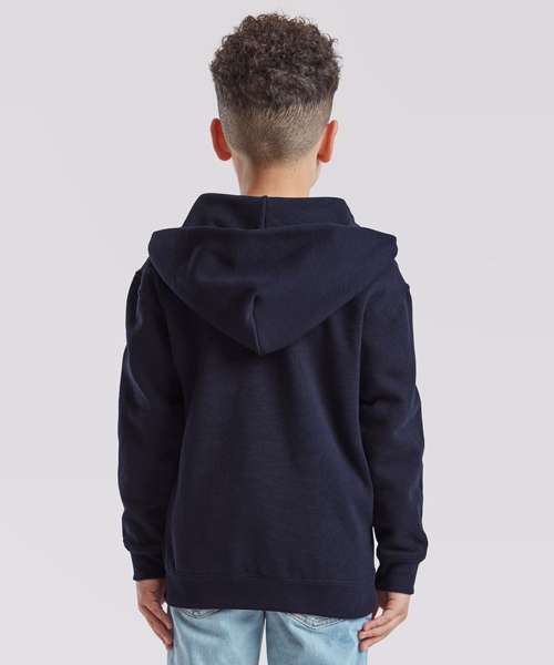 With a double fabric hood – without drawcord, in-line with European childrenswear legislation – and a covered metal zip for enhanced printability, the kids classic hooded sweat jacket is perfect for all kinds of garment decoration. Details include two front pockets, with a single Jersey back neck tape and cotton/Lycra® waist and cuff ribs providing everyday comfort and added warmth.