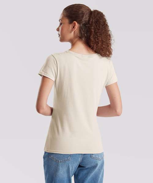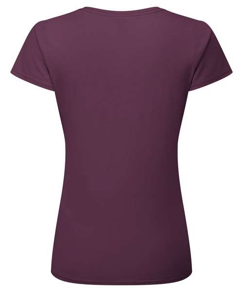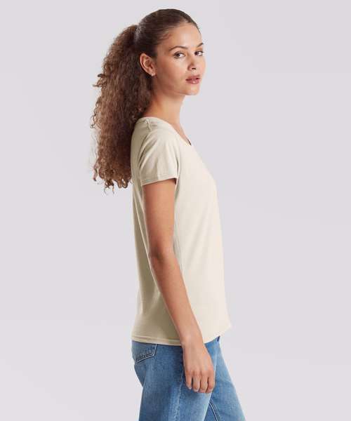 100 % combed ringspun cotton. Soft hand feel. Shaped side seams for a feminine fit. Performs at 60 degree wash. Crew neck with cotton/Lycra® and twin-needle stitching. Self-fabric shoulder-to-shoulder taping.
