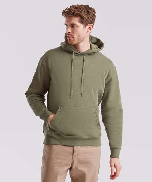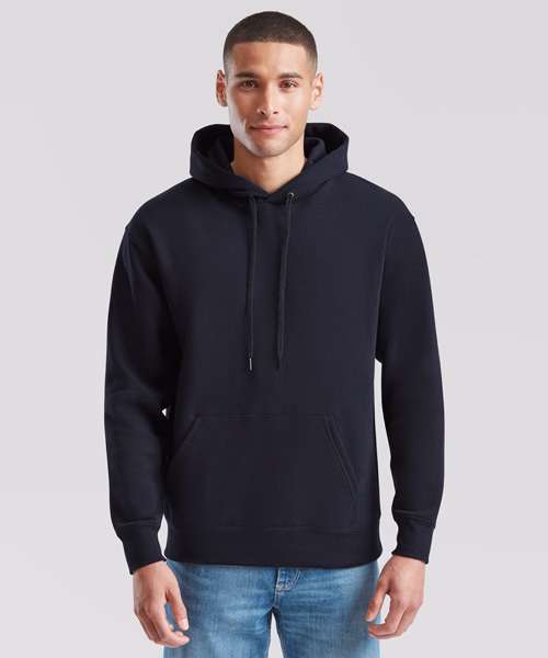 Ideal for work, tourism, event, leisure or casualwear, the Premium hooded sweat is available in a range of colours and features a 100% cotton face and double fabric hood. Details include a self-coloured flat drawcord and front kangaroo pocket, while a single Jersey back neck tape and cotton/elastane waist and cuff ribs provide easy movement and everyday comfort.