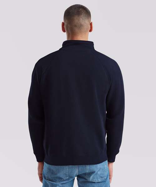 Cadet collar with single jersey back neck tape. Covered zip for enhanced printability. Two welt front pockets. Waist and cuff in cotton/Elastane rib.