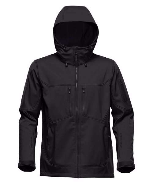 YKK® AquaGuard® zippers. Mechanical stretch. Full coverage, attached hood. Articulated fit. Grid back fleece lining. Chest pockets. Ergonomic hand pockets. Audio port.