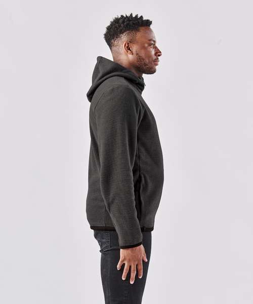 Pure Earth by STORMTECHâ„¢. Ultra-soft, ottoman-knit fleece shell. Full-coverage, easy-lock, adjustable, three-piece hood. On-seam zipped handwarmer pockets. Contoured side panels. Brushed tricot hood facing. Cuffs and hem. Adjustable hem. Low-profile chin saver.