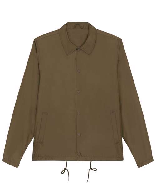 Welt pockets at front. Round drawcords at bottom hem in matching body colour, with metal tipping. Semi-elastic sleeve cuff. Inside chest welt pocket. Self-fabric half-moon at back neck. Inside zip opening at bottom hem and wearer’s left chest for easy decoration.