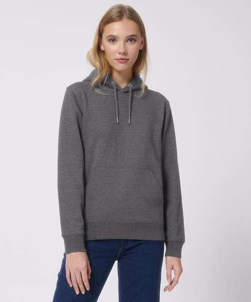 The unisex medium fit recycled hoodie sweatshirt is made from in-house organic cutting waste. Includes double-layered hood in self-fabric, and round drawcords in matching body colour with metal tipping.