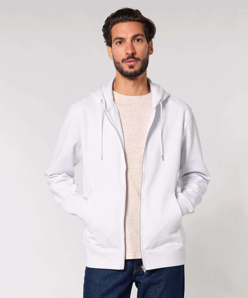 The modernised unisex Cultivator 2.0 iconic zip-thru hoodie sweatshirt – now in 100% organic cotton, with a new modern medium fit and wider rib at the hem and sleeve cuffs, as well as improved drawcord quality and closed metal drawcord endings. It also offers better decoration results than before, plus a deep and vibrant colour palette to choose from.
