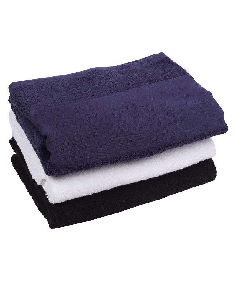 Heavyweight bath towel with deep pile and excellent absorbency. Featuring a wide border, perfect for personalisation. Finished off with a handy hanging loop.