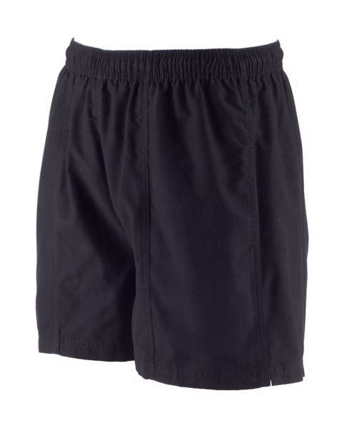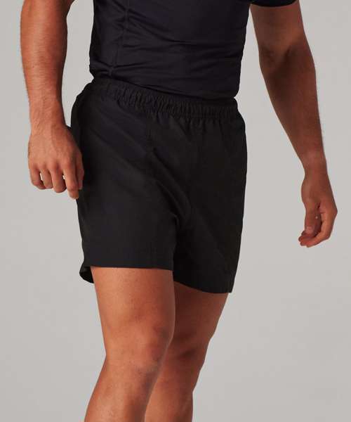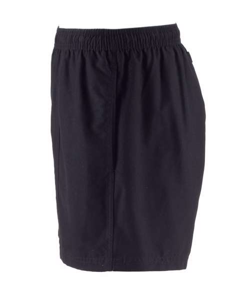 Microfibre with peached finish. Elasticated waist with inner drawcord. 2 side pockets, 1 back pockets with inner keycord. Inner mesh polyester brief.