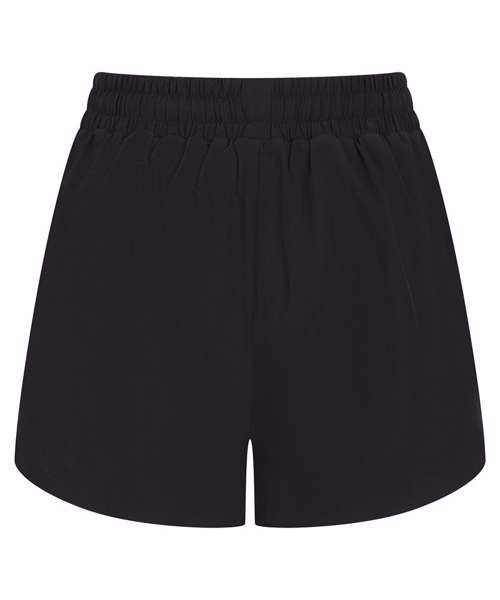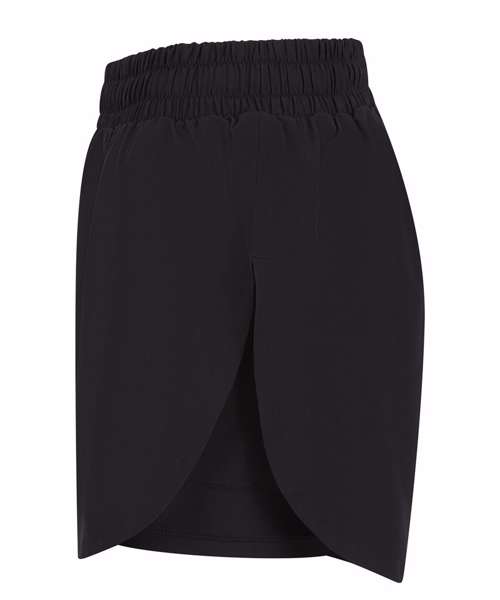 Women’s double-layer sports shorts. Four-way stretch fabric. Undershort made from stretch interlock fabric with wicking properties, and with phone pocket on left-hand side (as worn). High side vents for easy movement. Self-fabric elasticated waistband. Internal drawcords.