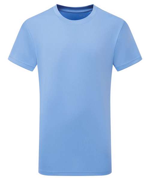 Wicking fabric. Stretch. Crew neck. Short sleeve. Lightweight. Twin-needle stitching on hem and arms. We recommend using block out vinyl and inks.Product contains no branded neck or waist label. Removable Kimble or looped garment tags. Inner seam label holds important product information on one label with a second label containing brand information which can be cut-away. UPF 40+.
