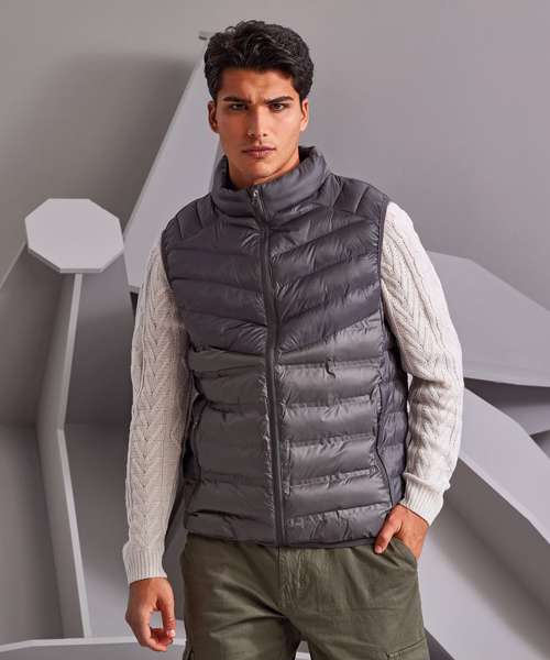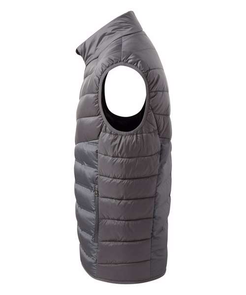 Reverse coil zip on centre front with signature zip puller and internal storm flap and chin guard. Moulded baffle panels on front and back. Diagonal ‘V’ stitched sandwiched baffles on front and back upper body panels with horizontal stitched baffles at side seams. 228gsm lightweight polyester fill. Internal binding on all seams. Pockets to have reverse coil zips with upper zip garages only. Stretch binding around armholes and hem for added protection. Product contains no branded neck label.* Removable Kimble or looped garment tags. Inner seam label holds important product information on one label with a second label containing brand information which can be cut-away.