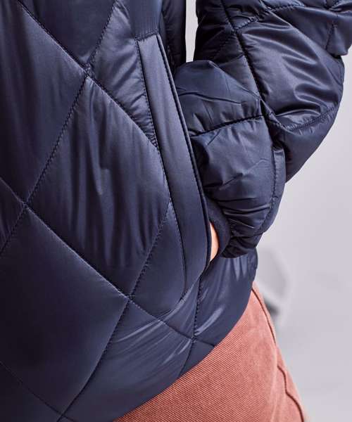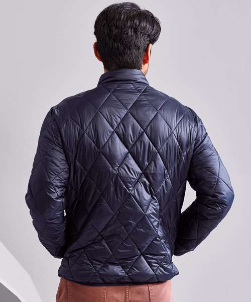 The diamond pane padded jacket is a lightweight style with fitted silhouette. Quilted with a diamond shape outer, this stylish jacket is perfect for work or leisurewear.
