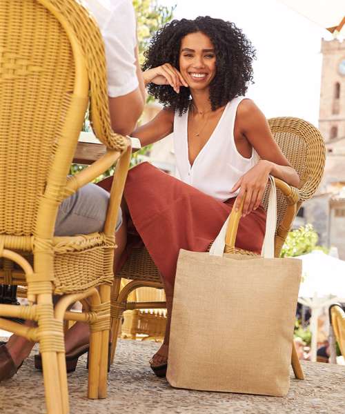 This innovate unlaminated jute tote is made with a tighter and smoother weave fabric and with cotton webbed handles, and is the ideal everyday bag.