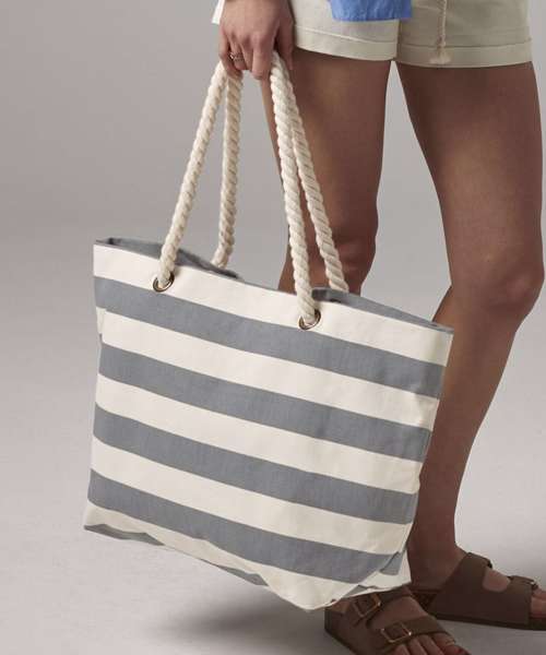 Horizontal stripes continue to influence high street fashion, and this boardwalk beach bag delivers as a key statement piece for fans of the popular maxi-bag style. Chunky rope carry handles offer classic nautical styling while premium brushed canvas makes this a robust choice for a day at the beach.