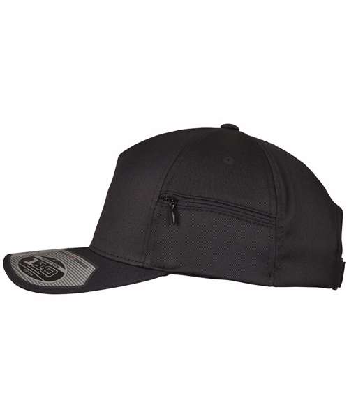 Fresh cap. Pre-bent visor. Practical Flexfit closure. Reversed hook and loop fastening. Classy colours. Zipper that runs on the side of the head.