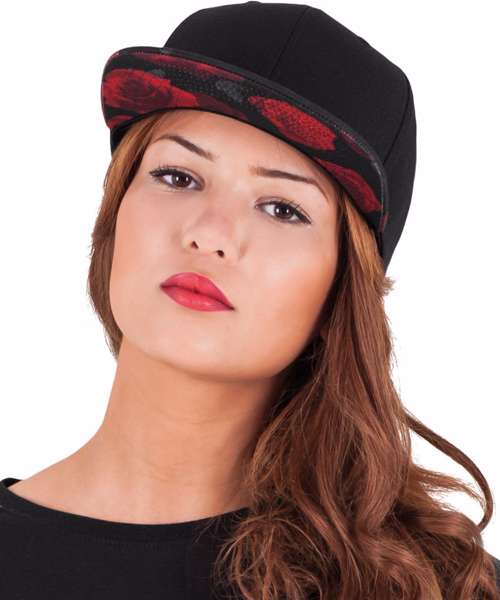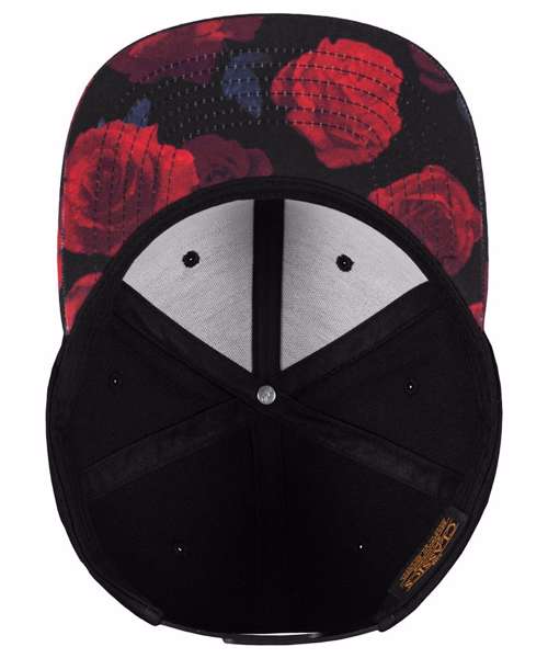 Roses snapback. Classic pro baseball shape with reinforced front and matching snap closure. Subtle rose print on the visor.