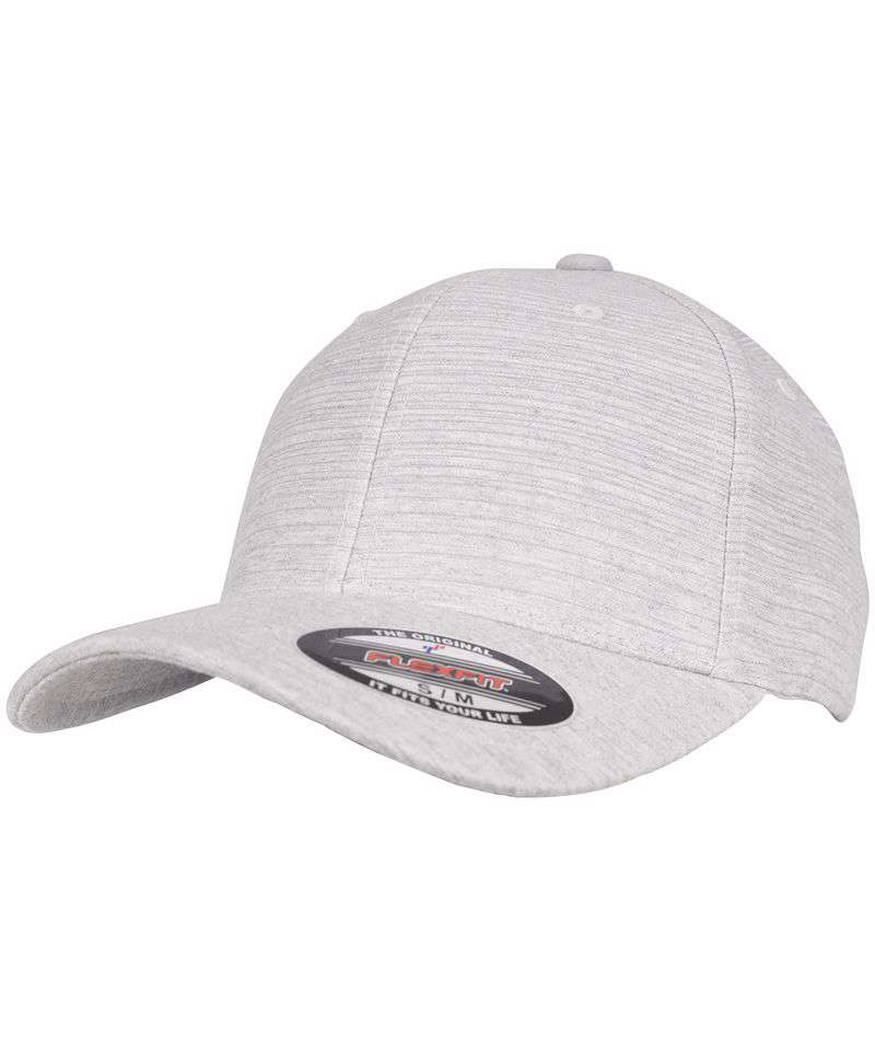 Flexfit ivory melange cap. Sporty cap. Proven Flexfit comfort. Fine striped texture. Matching brim in soft melange Jersey.